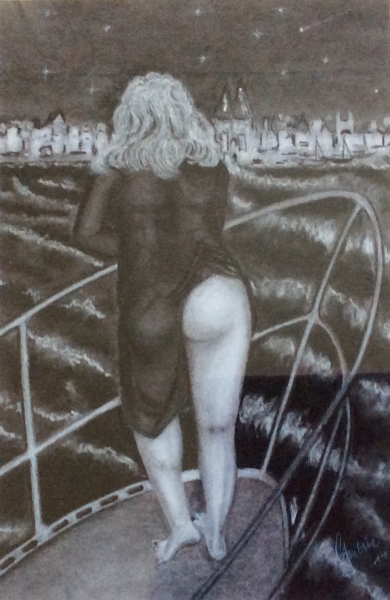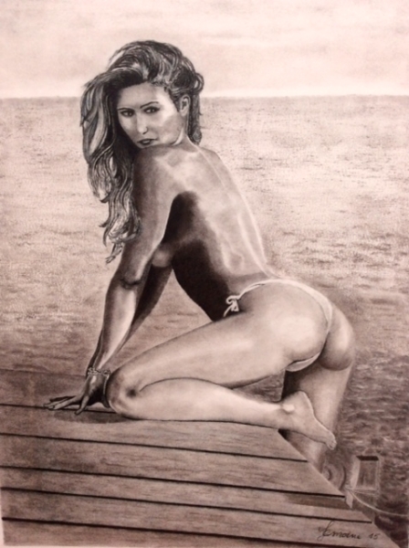Kohle und Kreide Zeichnungen mit Passepartout und Rahmen in verschiedenen Größen.